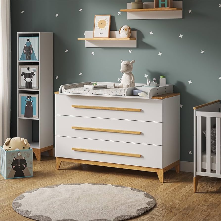 Como cómoda cambiador de bebé, esta pieza destaca por su versatilidad combinada con una estética limpia: ofrece un cambiador integrado sin necesidad de accesorios adicionales, un almacenamiento ordenado que reduce el desorden visual y una construcción que prioriza la seguridad del niño; sus ventajas competitivas incluyen el acabado blanco fácil de limpiar y el aprovechamiento inteligente del espacio en habitaciones compactas, por lo que sí la recomendaría a quienes desean una solución práctica y elegante que crezca con sus necesidades.